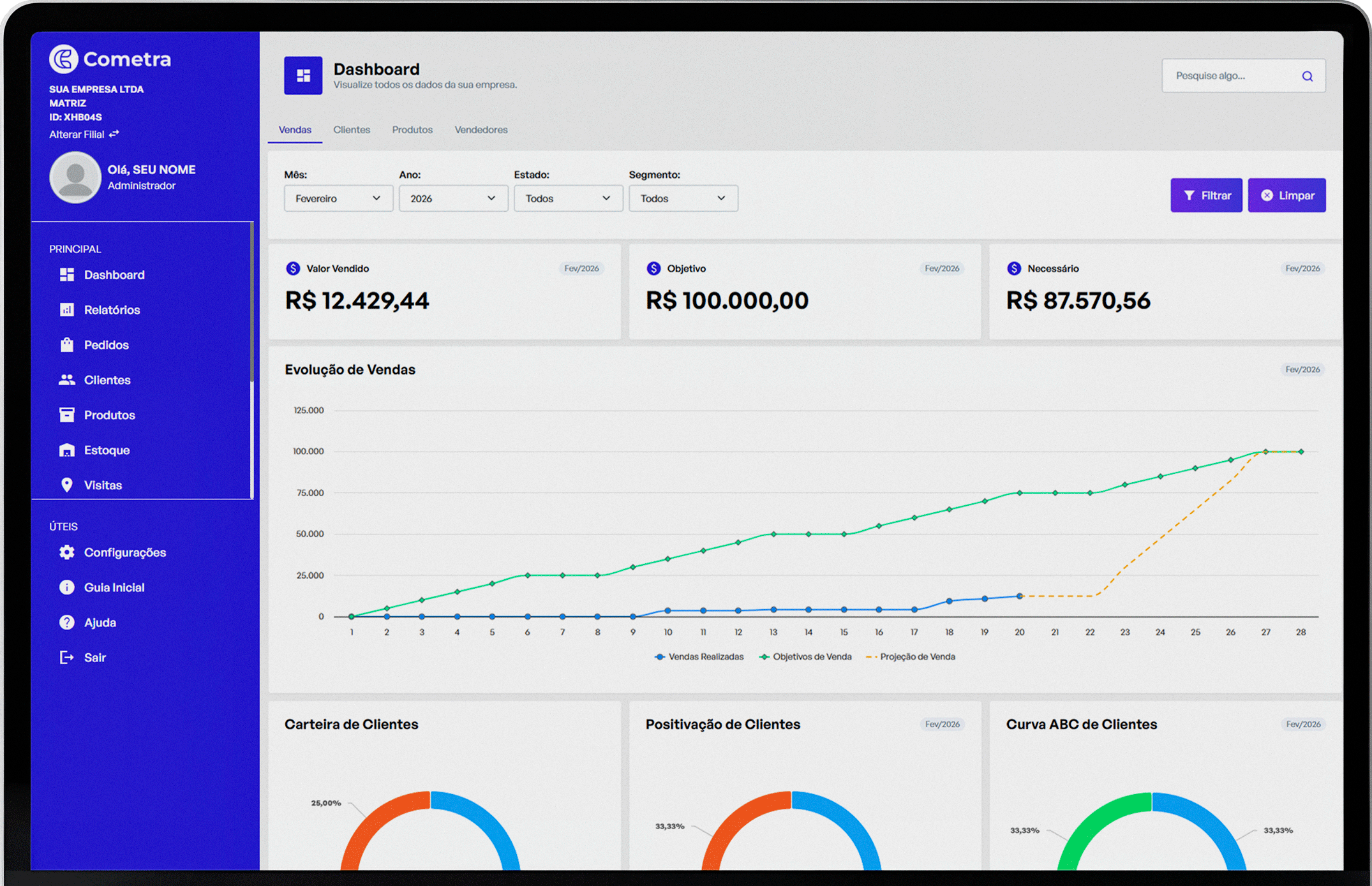 A Cometra oferece uma visão completa da carteira de clientes e indicadores de desempenho, permitindo decisões rápidas e inteligentes em tempo real.
