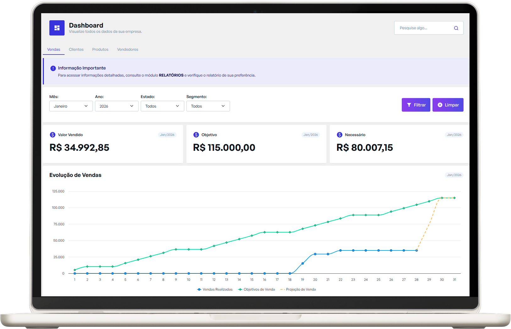 Monitore vendas, produtos e metas em tempo real, tomando decisões estratégicas.
